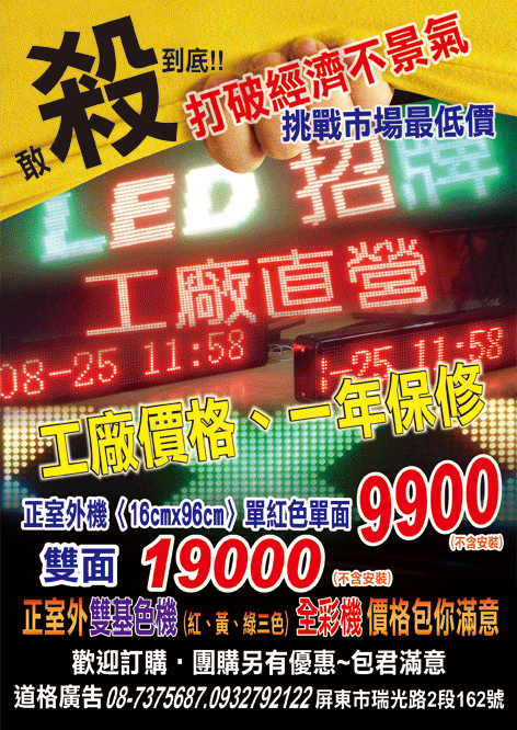 LED字幕機特價中~室內外全彩,雙基色,單紅色保固一年 歡迎公司行號訂購~企業團購另有優惠! 0932792122.0931320331